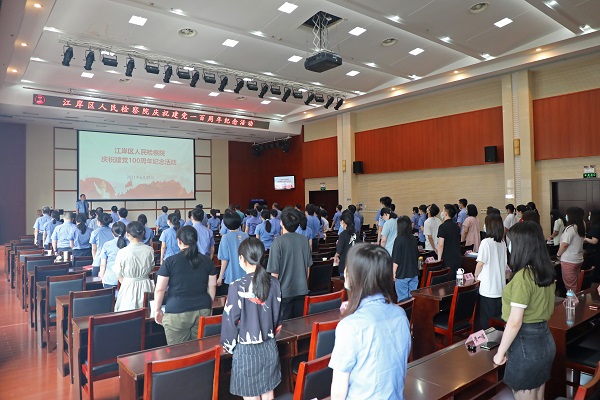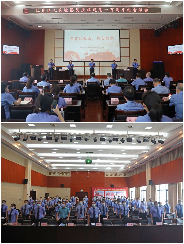 本网讯(通讯员:郝硕)6月29日下午,在中国共产党百年华诞前夕,江岸区人民检察院举行庆祝建党一百周年纪念活动,共同回望百年沧桑、夯实信念基石。该院党组班子成员及全体干警、雇员、文员参加活动。活动由党组副书记、副检察长何伟主持。