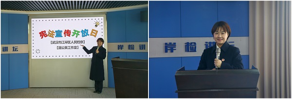在本次宪法开放日活动,育才汉口小学与江岸区人民检察院未成年检察部门共建法治基地。育才汉口小学向蒲公英工作室送来了锦旗,未检检察官梁东受聘为育才汉口小学的校外辅导员。今后蒲公英工作室将会积极履行普法职责,护航同学们的成长。