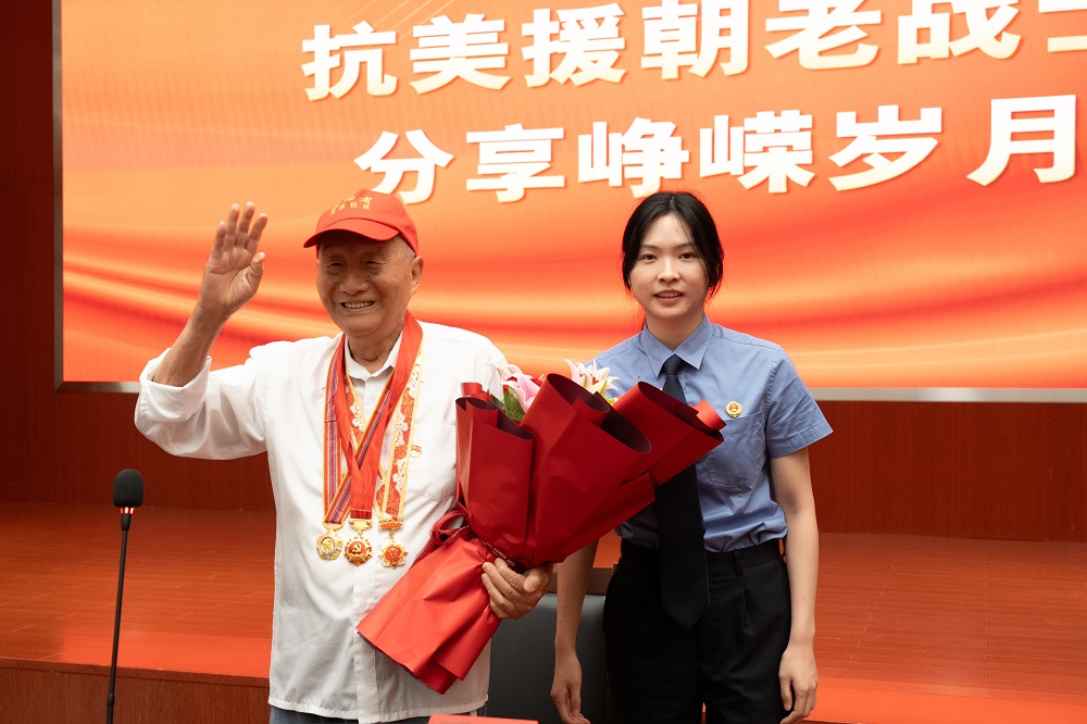今天的担当,源于昨日的传承;今天的幸福,来自先辈的牺牲。随后,党龄64年的93岁抗美援朝老战士洪星老前辈为大家分享他的峥嵘岁月,他的每一段回忆,都是对“英雄”二字最鲜活的诠释。洪老的讲述中,以“保家卫国”为信仰底色,以“无畏坚守”写就英雄篇章,以“刻骨思念”承载精神惦念,以“薪火相传”寄望青年一代。