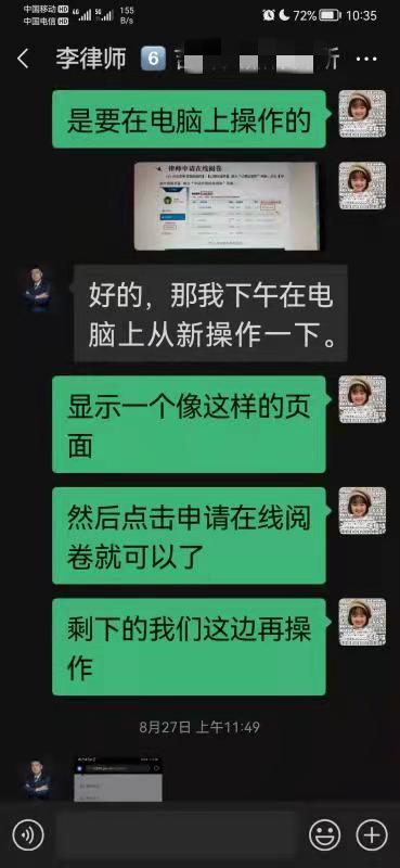 “现在疫情期间出行不便,网络阅卷真是太方便了,你们工作人员也非常的专业和贴心,给我的工作带来了极大的便利,真的很感谢你们。”顺利完成阅卷工作的李律师通过电话向案管工作人员表示了感谢。